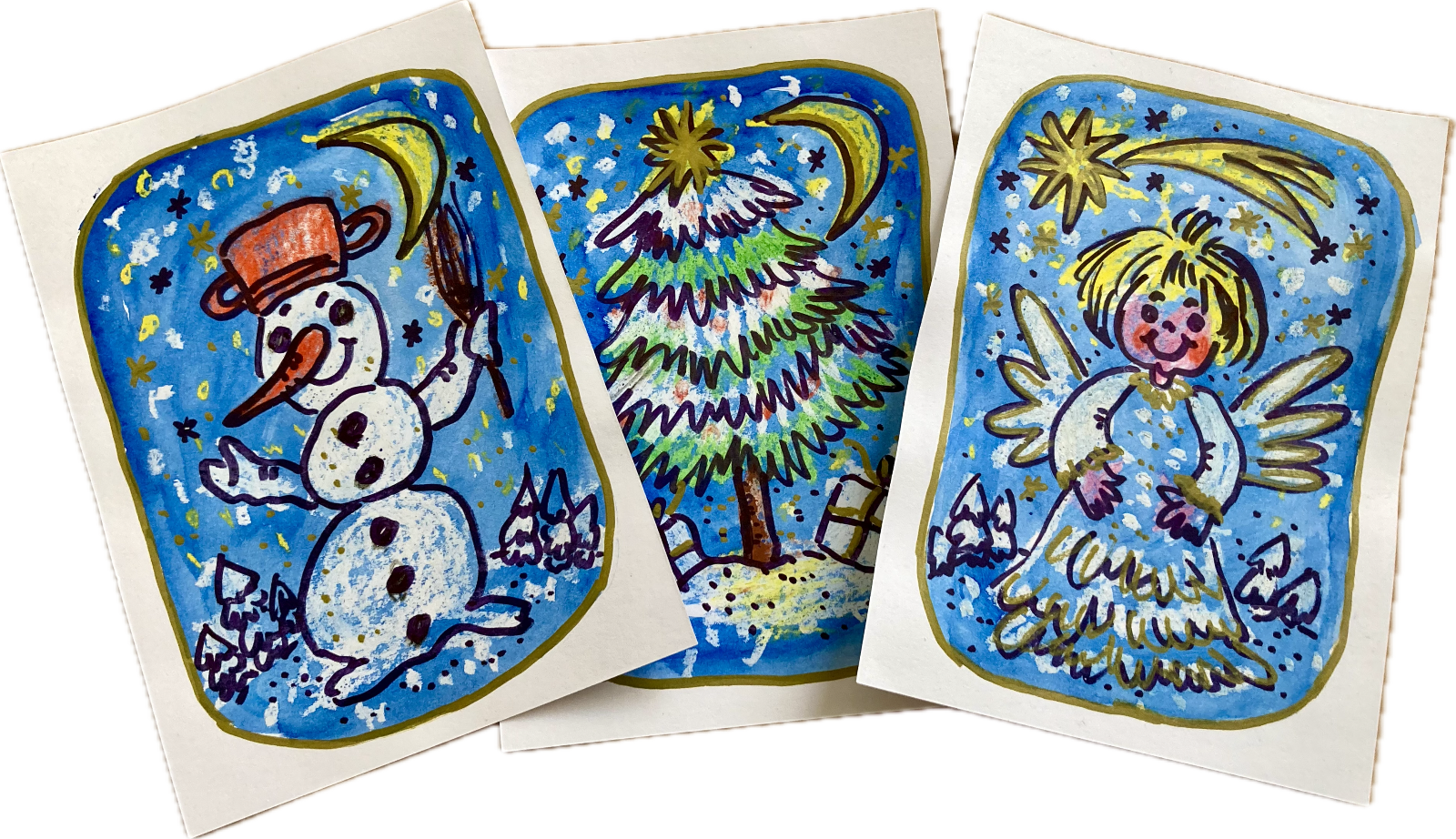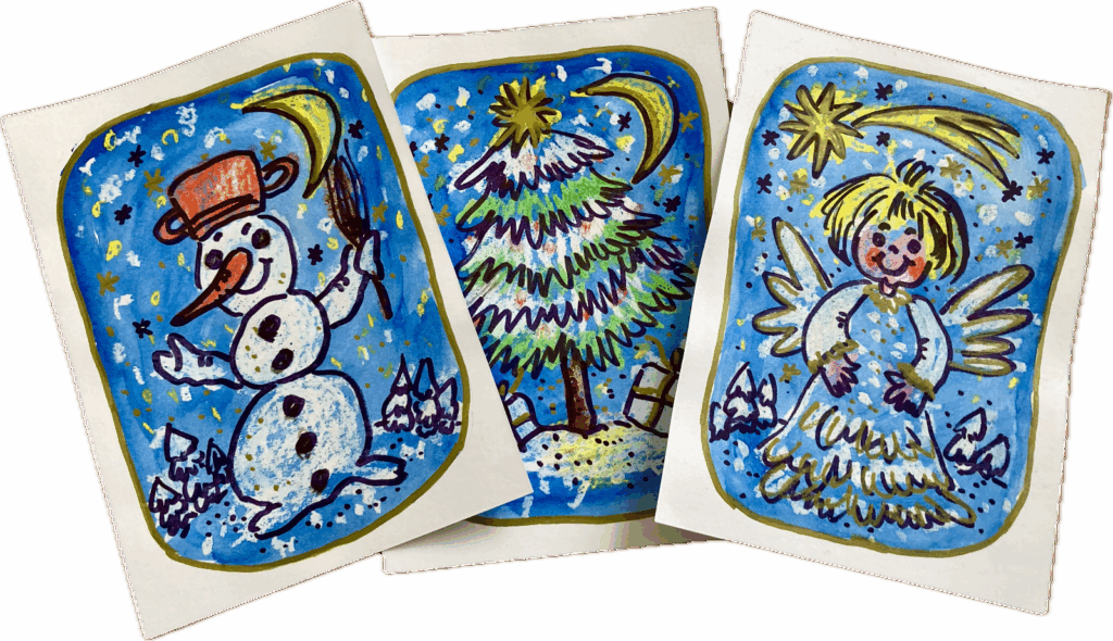 Volná přední strana se následně libovolně ozdobí, nejčastější témata jsou Vánoce a Velikonoce. Děti mohou nejen kreslit, ale také nalepovat obrázky a zkoušet různé výtvarné techniky.